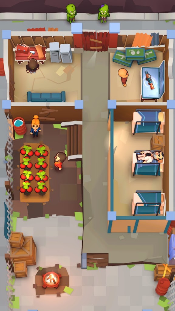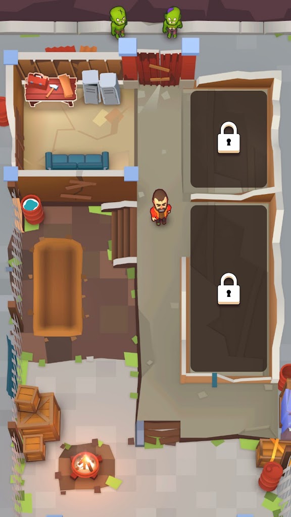 僵尸庇护所幸存者是一款3D动作冒险游戏,玩家将扮演一名被困在僵尸庇护所的幸存者,你必须在被僵尸包围的情况下,利用限制的武器和策略,完成任务并获得逃生的机会。玩家可以在游戏中自由切换不同的武器,可以打开柜子搜寻物资,可以向僵尸巢穴发射火箭弹。