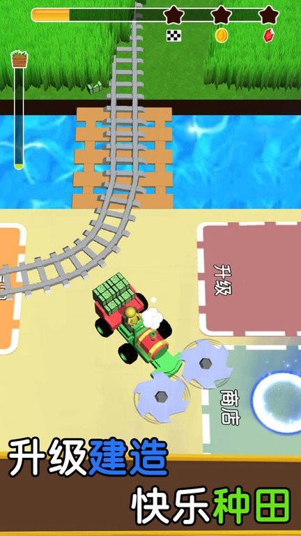 2、整个游戏的玩法和操作也是非常简单有趣的,大家可以不断的解锁更多收割机,自由的在道路上前行