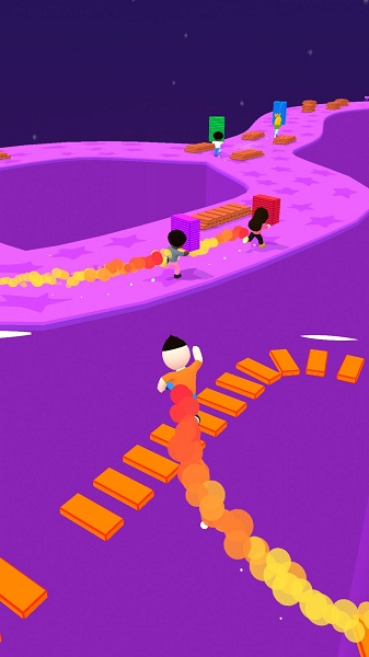 玩家在游戏中需要收集木头,塔建一座座小桥让人物顺利的过去,在闯关的过程中会有其他敌人,一定要小心他们,最后率先到达终点。