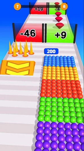 彩球快速跳跃是一款卡通风格的跳跃闯关游戏,将球扔进相同颜色的孔中
