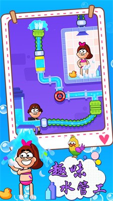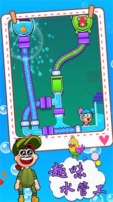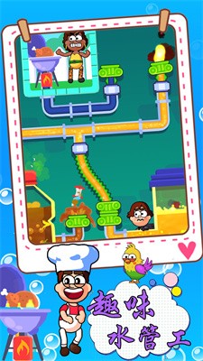 1.卡通的画面却有着歪七扭八的水管,你的连接方式将决定着水流是否能够到达目的地。