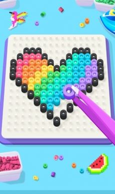 使用彩色珠子创造各种奇妙的图案,十分还原现实生活中的串珠子过程,十分考验玩家的耐心程度