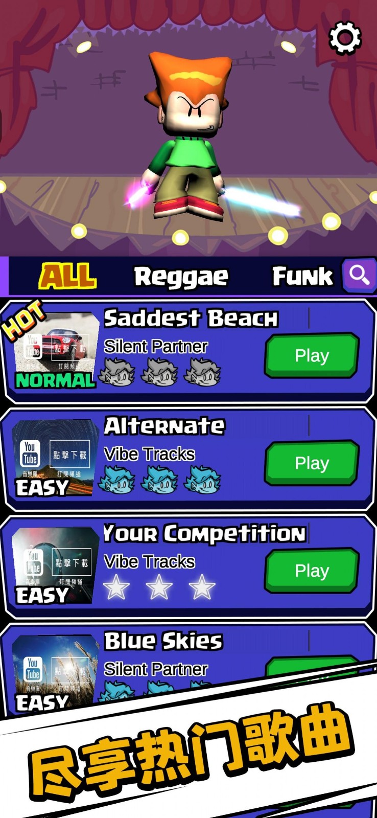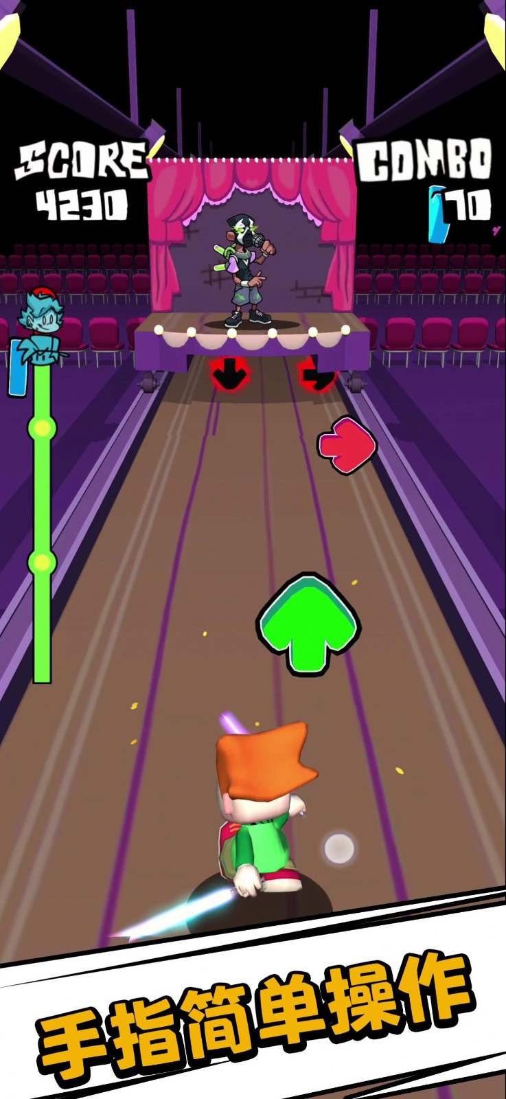 节奏冲刺周五夜(Music Dash)这是一个充满美妙元素的音乐节奏冒险挑战。趣味音乐跟随背景用指尖灵活跳跃。轻松掌握各种优秀背景,给玩家带来最震撼的挑战。掌握多元素冒险很刺激,控制自己的力量很有趣,解锁更多城市地图,在游戏中赢得奖励包。推出更好的游戏体验,满心欢喜!