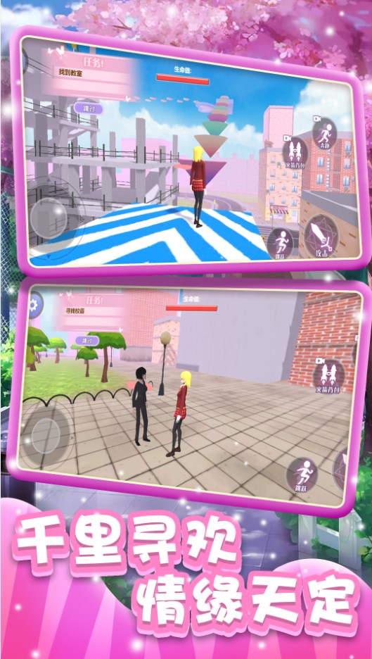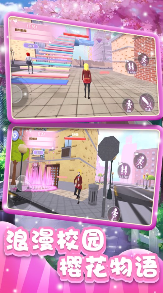 1、游戏场景独特,以樱花高中为主题,角色画风清新,拥有可爱少女少年形象。
