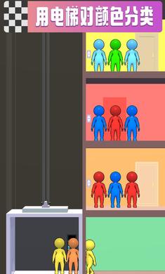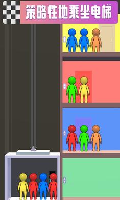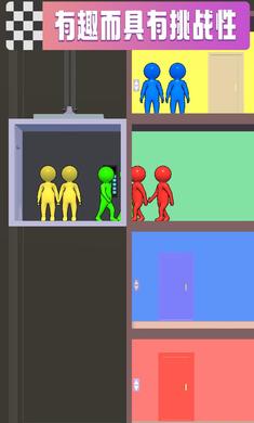 1、在乘坐电梯时,将人们移动到正确的楼层,战略性地拿起或留下相同颜色的小人儿。