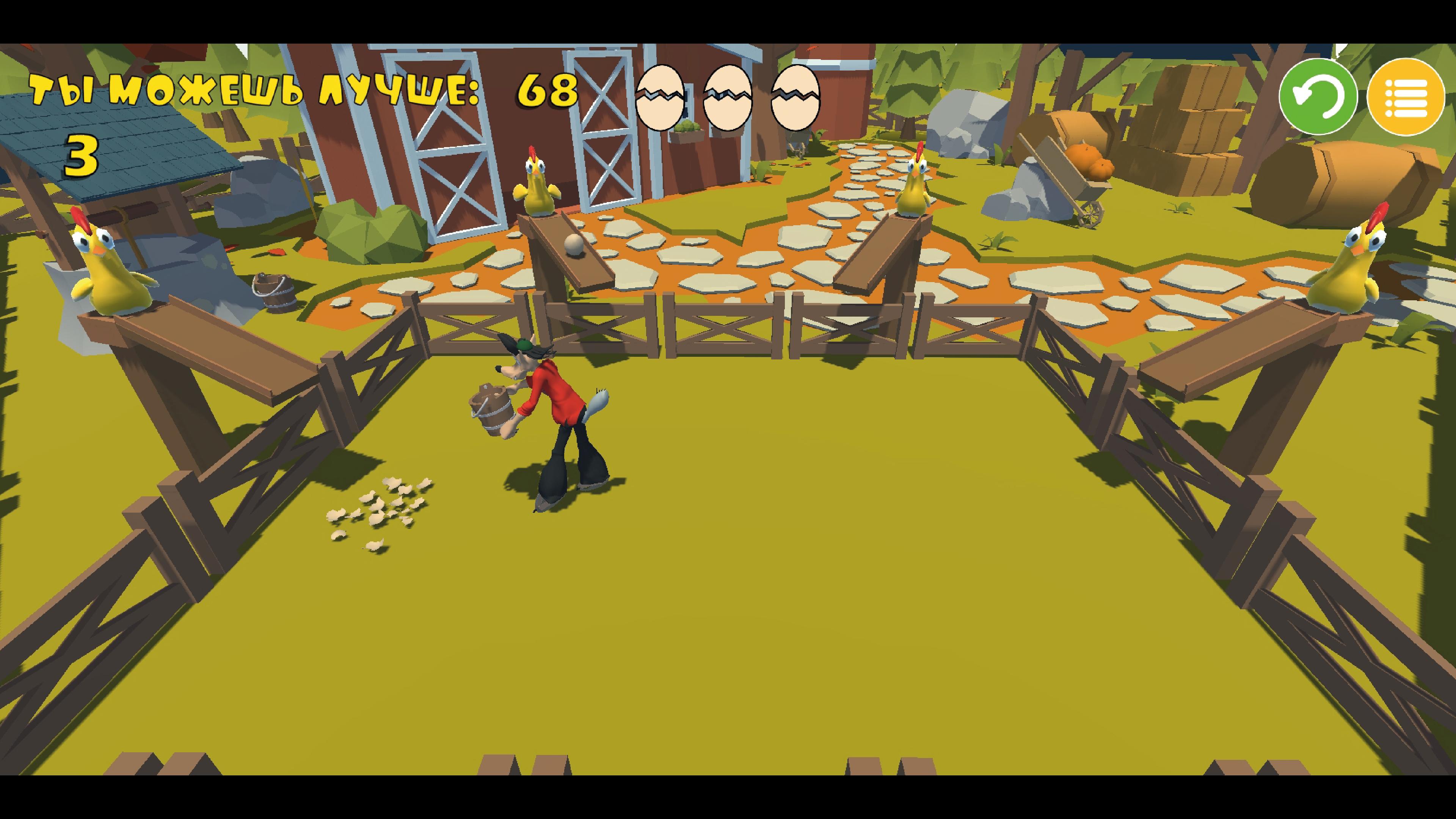 2、你需要操作一只大灰狼来接住四个方向落下来的鸡蛋,不能让鸡蛋落到地上;