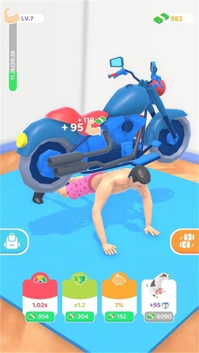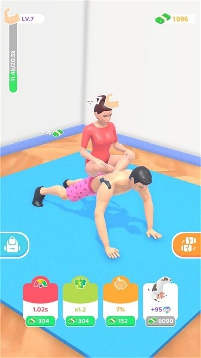 3、不同的肌肉锻炼器材,让玩家练习不同的肌肉群,让自己的角色快速成长,提升能力值。