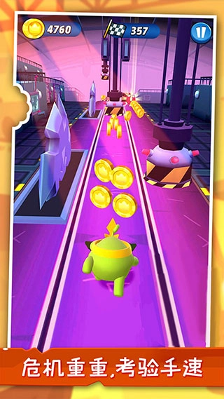 1、玩家控制可爱角色的进程。游戏类似于跑酷;