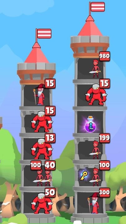 1、在《红蓝大对决:一起来爬塔》中,不仅需要提高自身实力,还要通过多样化的道具获取高级的装备,