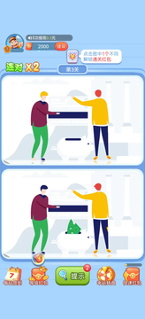1、游戏非常简单,老少皆宜,你只需要找出图片中的不同之处就行了。
