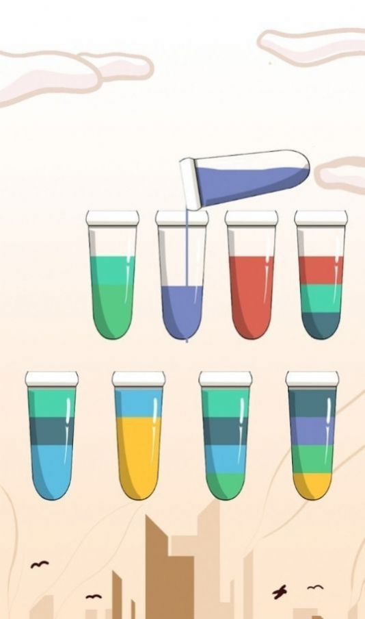 1、会有很多不同颜色的液体等你分类,需要将关卡中所有问题都给解决。