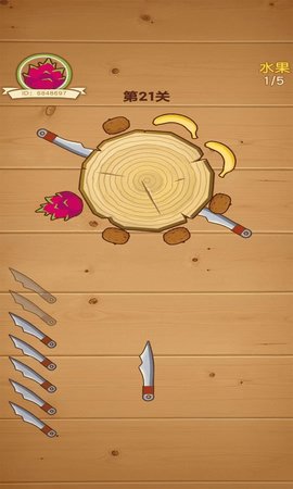 3、要打出一手高超的飞刀手,需要将飞刀抛向水果才能命中目标,赢得高分;