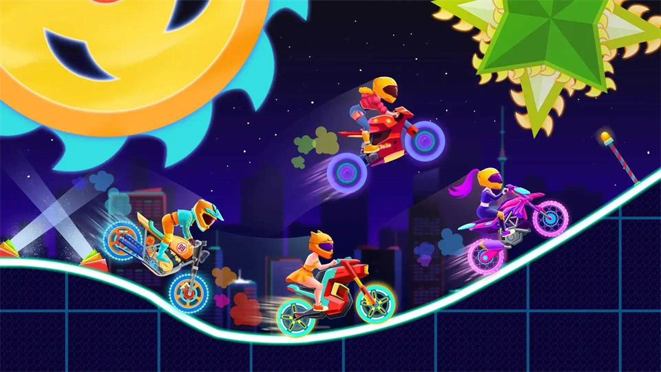 摩托霓虹灯玩家需要控制一辆摩托车在夜晚的城市街道上高速行驶,穿过不同的障碍物和跳跃。同时注意避免撞到障碍物或者跳跃不当而导致摔倒。在游戏中,玩家可以收集金币和其他奖励,用于购买新的摩托车或者升级现有的车辆性能和配件,一起来试试看吧。