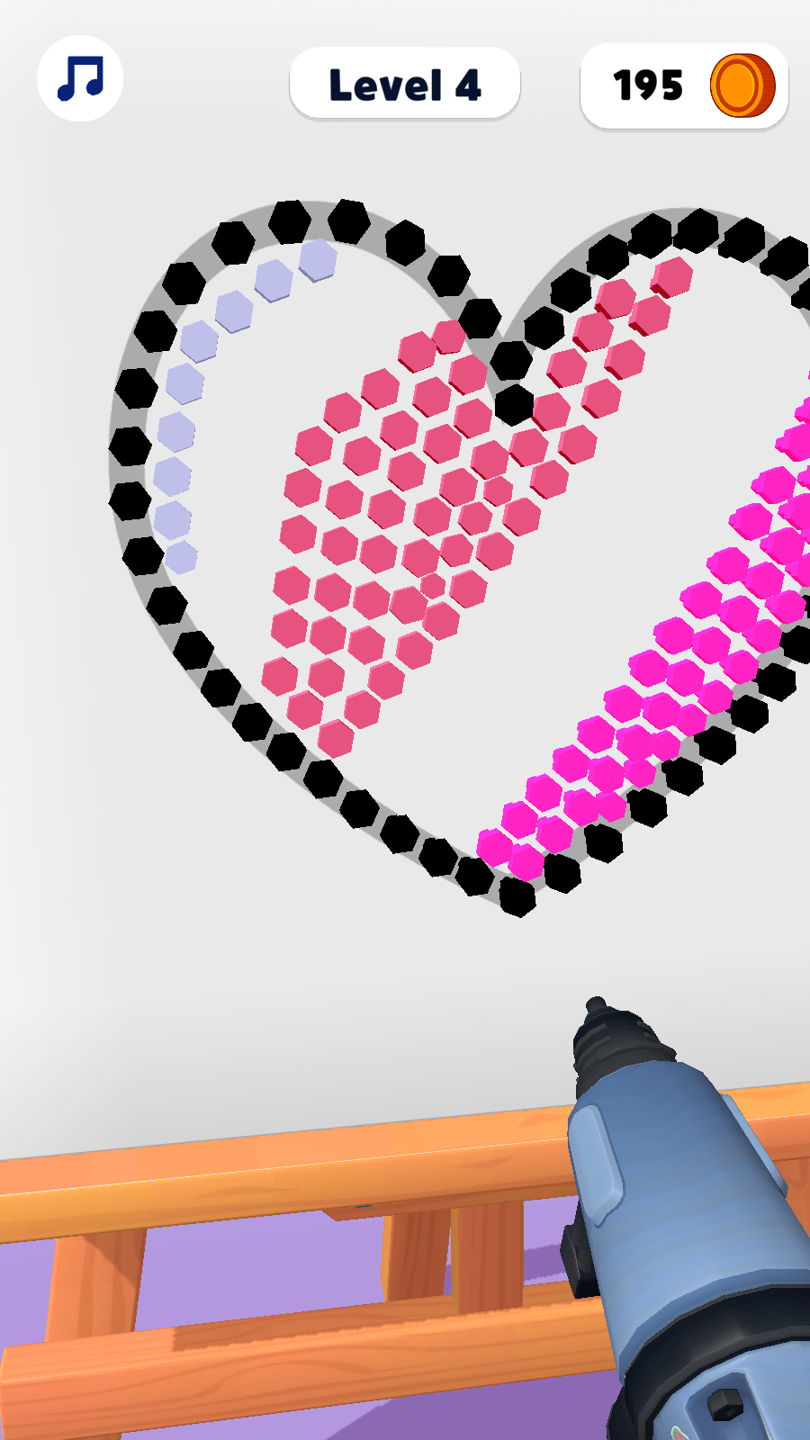 钉枪艺术家是一款创意益智游戏,玩家需要用钉子和线条组成各种图案,同时还有多种不同的钉子和线条可以解锁和使用,玩家可以根据自己的创意进行自由组合。玩家可以选择自己喜欢的模式进行游戏,喜欢的小伙伴来试试看吧。