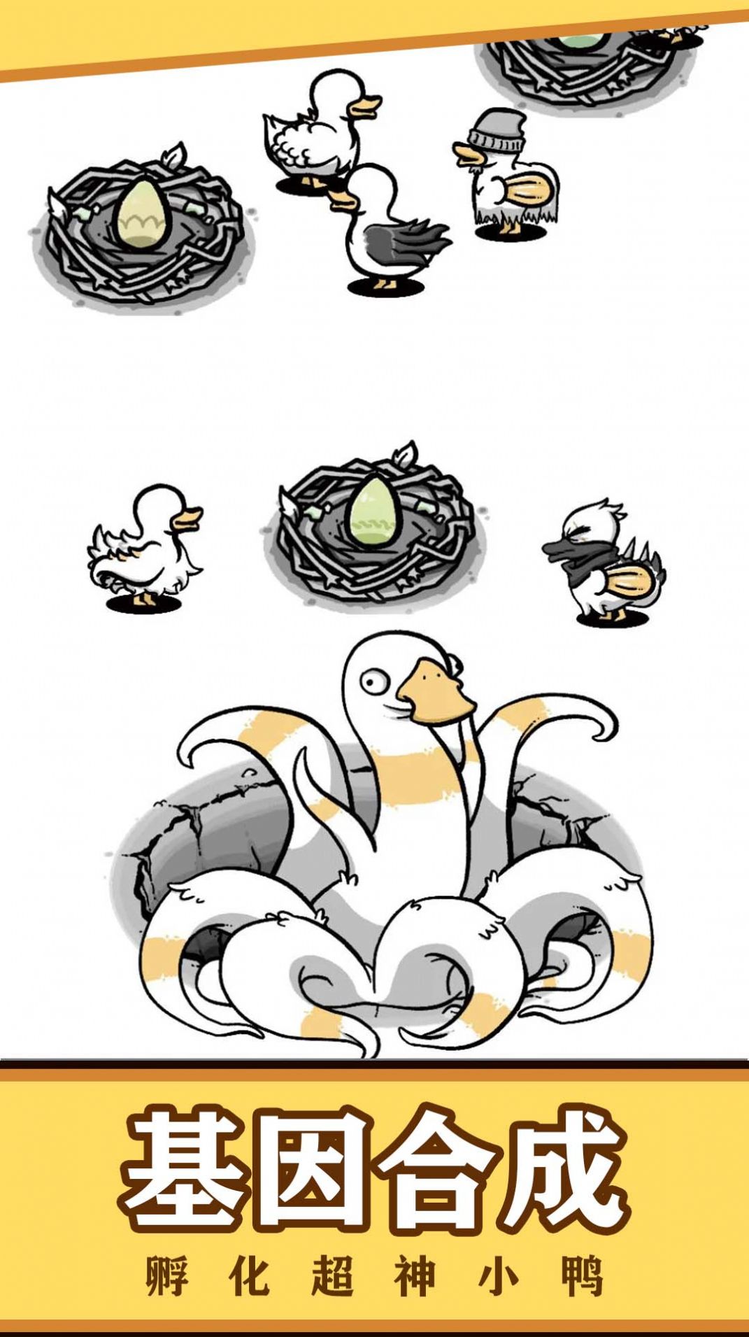 3、脑洞大开,不同属性的鸭子合成后会有不同的形状和属性,给你意想不到的奇妙体验。